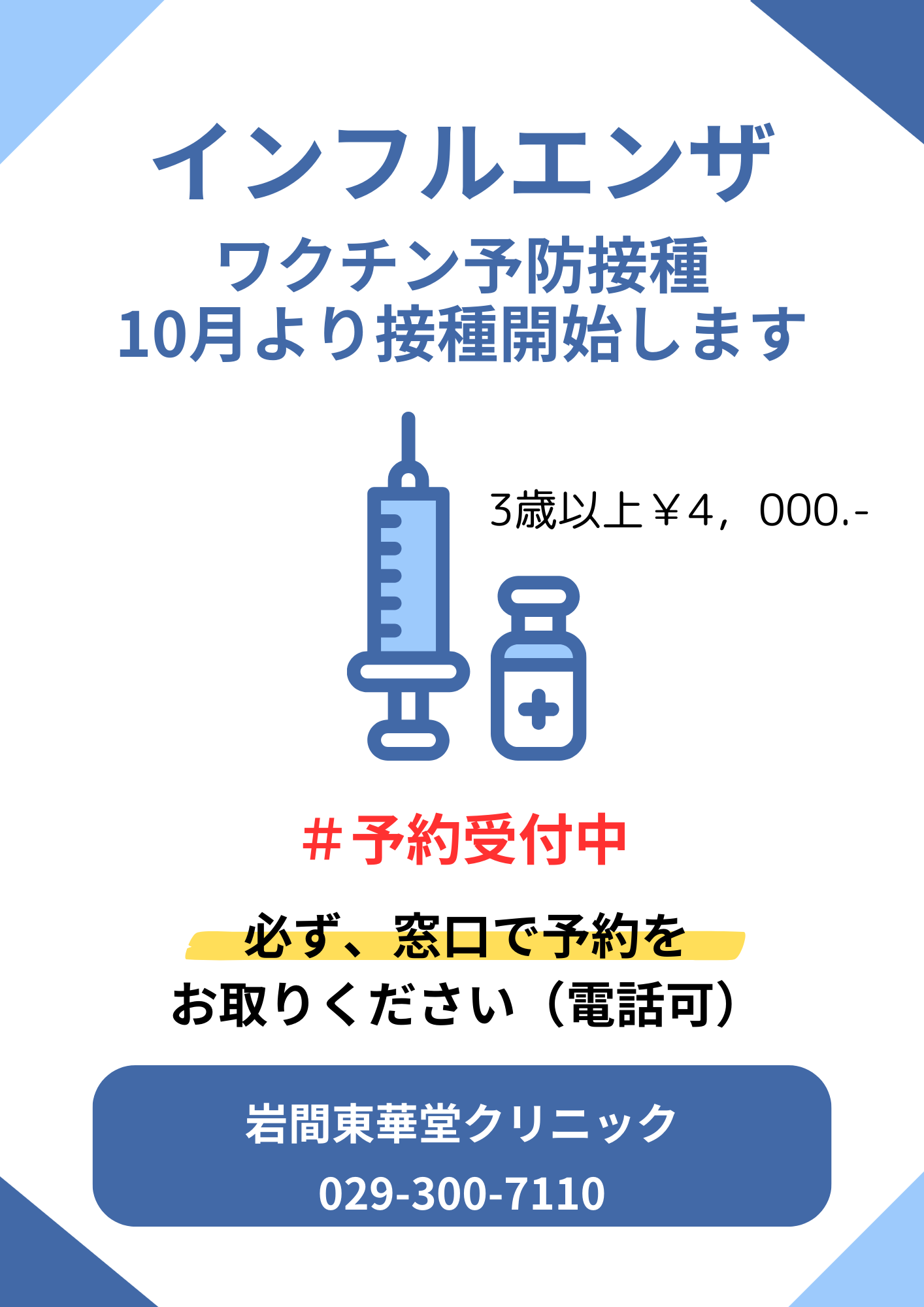 インフルエンザ予防接種の予約受付を開始いたしました。